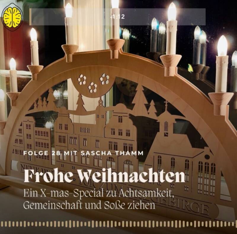 Am 23.12.2024 ab 5 Uhr gibt es noch eine kleine besondere X-mas-Podcast-Folge mit Sascha Thamm, Bürgermeister der stattlichen Gemeinde Neukirchen im Erzgebirge, zu hören. Natürlich mit traditionellen Themen wie Soße ziehen, Licht, Licht und Licht im Erzgebirge, Neudorf vs. Crottendorf... aber auch aktuelle Themen wie Gemeinschaft als Ressource für die eigene psychische Gesundheit, Kulturhauptstadt Chemnitz 2025 und unser Fachtag 2025 in Neukirchen haben wir sachlich und faktisch ganz emotionslos besprochen. Es war mir neuerlich ein inneres Blumen pflücken zur Weihnachtszeit eine kleine Festtagsfolge aufzunehmen, die Franz-Jakob Roth neuerlich in die Produktion geschickt hatte. Viel Vergnügen. Der Podcast ist überall hörbar, wo Podcasts hörbar sind. #kopfvitamin
