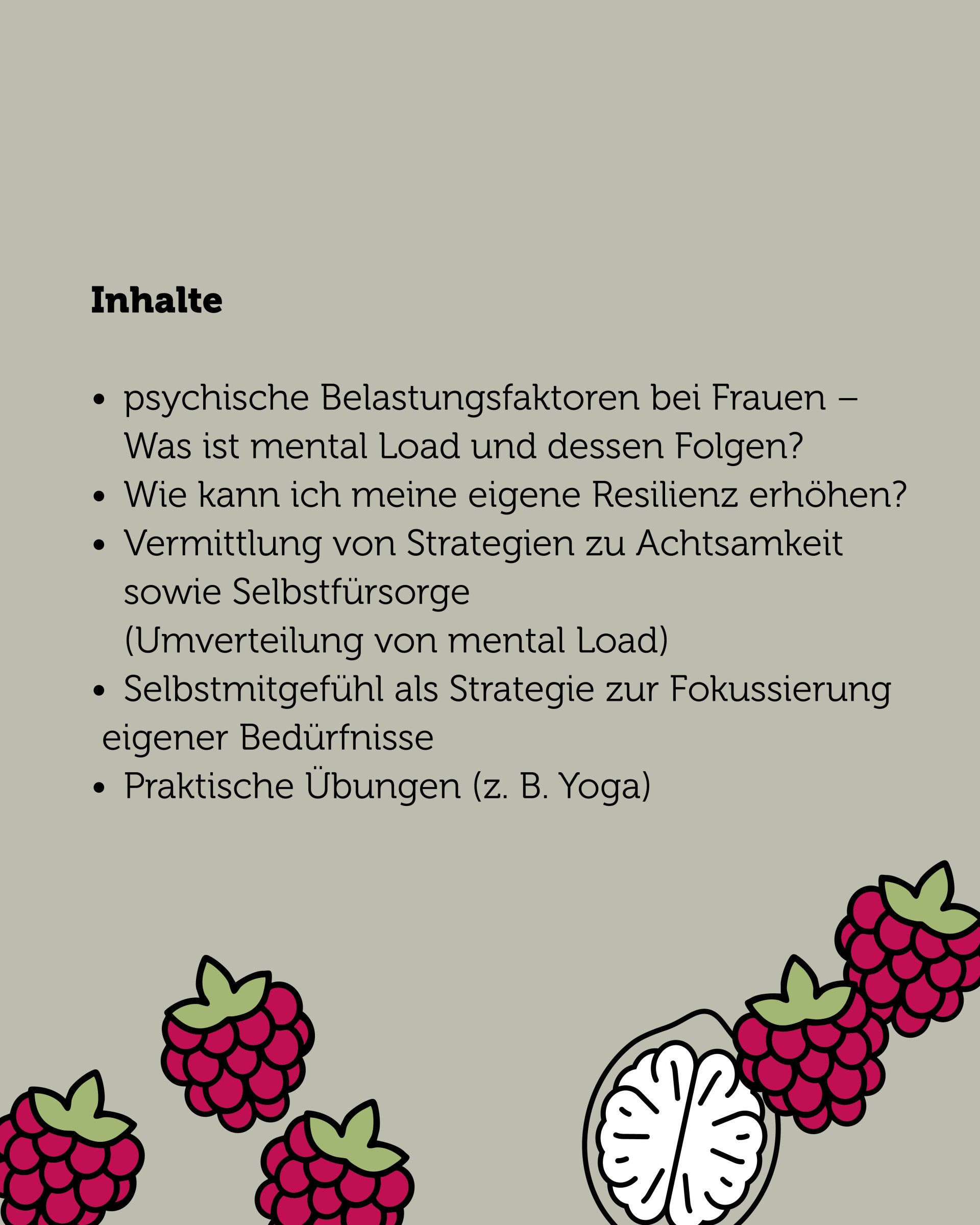 Mental Load – oder wenn der Kopf zu viele To Do’s bewältigen will… Wer kennt es nicht? Beruf, Familie, Partnerschaft, Hobbies, Sozialkontakte, Kindergeburtstage, Arzttermine, Rucksack packen für die Kita etc. … alles Herausforderungen, die den Alltag als Frau ins Wanken bringen können. Manchmal beginnt die Anspannung im Kopf, wenn viele Dinge auf einmal zu erledigen sind und der mentale „Overload“ dazu führt, dass keine Zeit für die eigenen Bedürfnisse gegeben ist. Dies kann dazu führen, dass Frauen zu wenig Ruhepausen haben, zu wenig Schlaf erhalten und dies zu Unausgeglichenheit bzw. Gereiztheit führen kann. Im Rahmen eines selbstfürsorglichen Tags zur psychischen Gesundheit bei Frauen werden Besonderheiten im Dasein als Mutter, Partnerin und Arbeitstätige beleuchtet und im Hinblick auf Möglichkeiten der Förderung einer gesunden Balance diskutiert. Neben Impulsen wird der Austausch im gemeinsamen Miteinander unter Frauen gefördert und zugleich sollen praktische Übungen (u.a. Yoga) dazu einladen, sich mit den eigenen Bedürfnissen zu beschäftigen und für den Moment ein wenig Ruhe und Gelassenheit zu erfahren. Das Kulturzentrum „Goldne Sonne“ in Schneeberg stellt die Räumlichkeiten zur Verfügung, um in einen gesunden, achtsamen und erkenntnisreichen Prozess rund um Selbstfindung, Selbstwirksamkeit und Umgang mit typischen Belastungen zu gelangen. Wir freuen uns Euch zu begrüßen und Euch an diesem 11. April 2026 zu vermitteln, dass Ihr wichtig seid Euer Tun wertvoll ist. Anmeldungen können ab sofort vorgenommen werden. Es können auch Gutscheine zur Veranstaltung (bspw. zu Weihnachten, Geburtstagen oder einfach so) gekauft und verschenkt werden. #frauengesundheit #resilienz #kopfvitamin Design: Anne Krauß