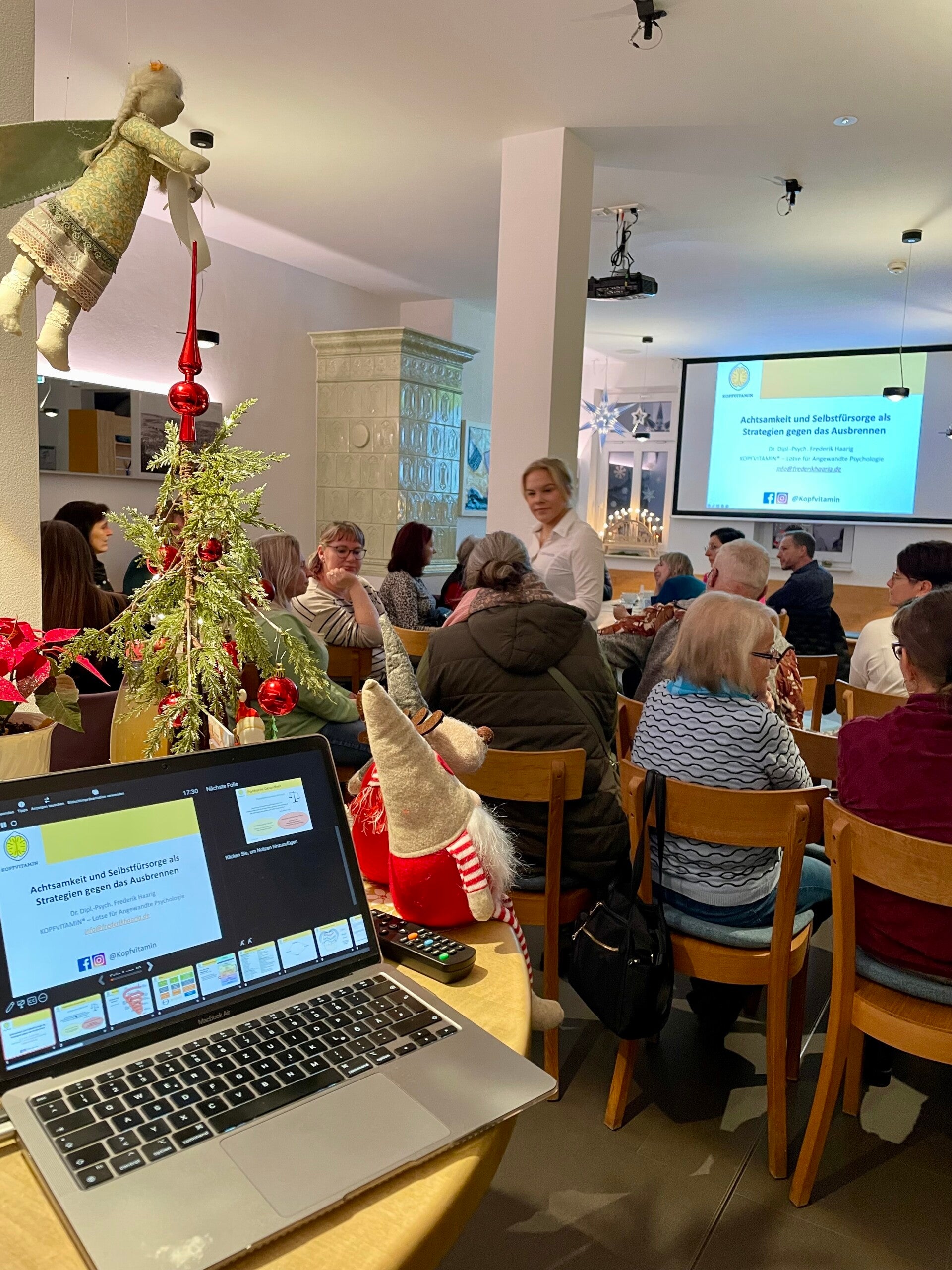 Letzter Vortrag 2025. Und dieses Mal mit einem besonderen Impuls zu Achtsamkeit und Selbstfürsorge im Café Marie in Kirchberg. Wir sagen Dankeschön für den Zuspruch in diesem Jahr. Ganze 13 öffentliche Vorträge konnten wir in unterschiedlichen Lokalitäten halten, um über Themen der psychischen Gesundheit aufzuklären sowie Tipps und Strategien zum Umgang mit sich und seinen Mitmenschen zu vermitteln. Darunter waren unter anderem das Kulturzentrum Goldne Sonne in Schneeberg, der Lößnitzer Bildungsweg, Salute e.V., das Pflegekompetenzzentrum Lichtenstein sowie das Café Marie in Kirchberg. Letzteres stellt einen Begegnungsraum zur Verfügung, um für Menschen mit und ohne Handicaps einen Safe Space zu schaffen, um sich zu treffen und in Kontakt zu kommen. Wir freuen uns schon sehr auf 2026, wenn neuerliche Vortragsreihen in Schneeberg, Kirchberg sowie in Marienberg (in der Baldauf-Villa) realisiert werden. Dazu gibt es dann zum Start ins neue Jahr die "Kopfvitamin-Impuls-Daten" 😊 Eine besinnliche und erholsame Weihnachtszeit. @cafe_marie_kirchberg @kulturzentrumgoldnesonne @salute_training @europlussenioren @loessnitzer_bildungsweg @baldauf_villa #mentalegesundheit #kopfvitamin #psychischegesundheit